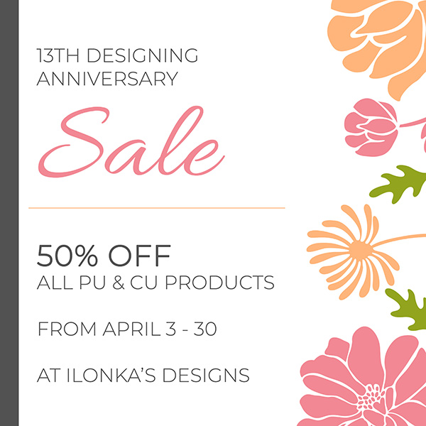 Our Featured Designers for the Daily Download both have sales in their stores for the entire month of April.
