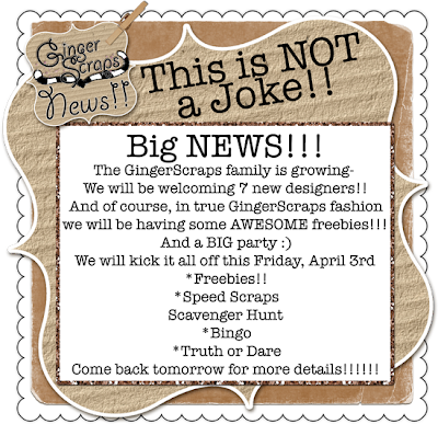 We are counting down to Friday’s big launch. The new Gingerscraps Design and all of their CT’s have an out of this world freebie for you starting on Friday…. Keep your blog reader’s tuned here!