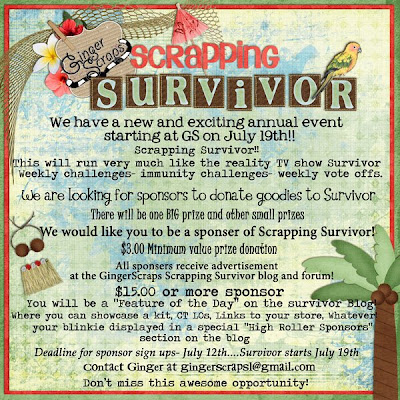 If you would like to be a sponsor of scrapping survivor you will in turn receive advertisement at the GingerScraps Scrapping Survivor blog and forum.