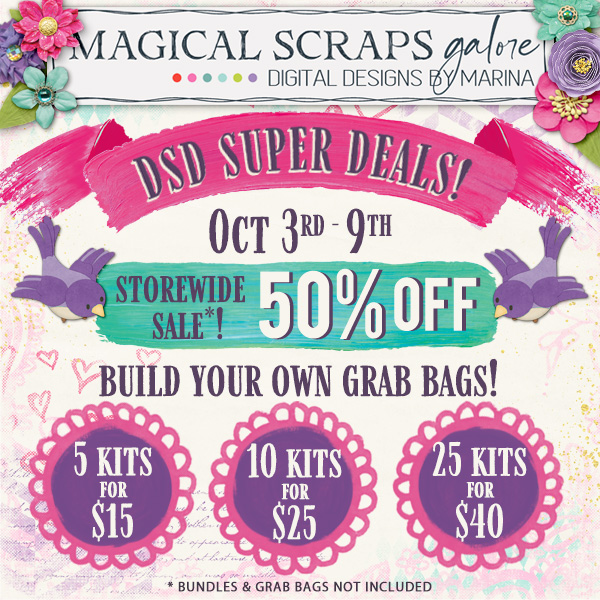 Let’s see what wse have this week. There are a lot of Grab Bag, Build Your Own Bundle, and big sales opportunities for DSD.