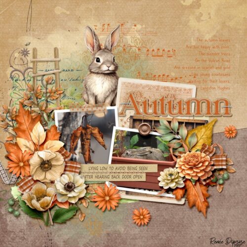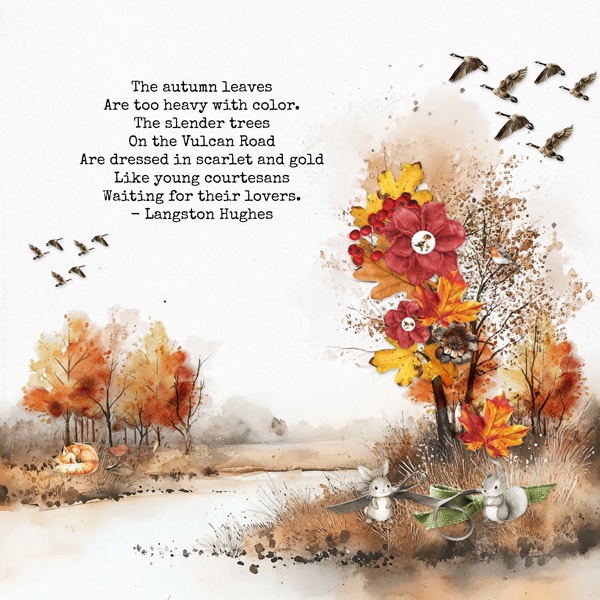 And last, we have this evocative layout from photocrazy. The watercolour paper she used provides a perfect backdrop to the fall cluster and the wildlife touches are sweet.