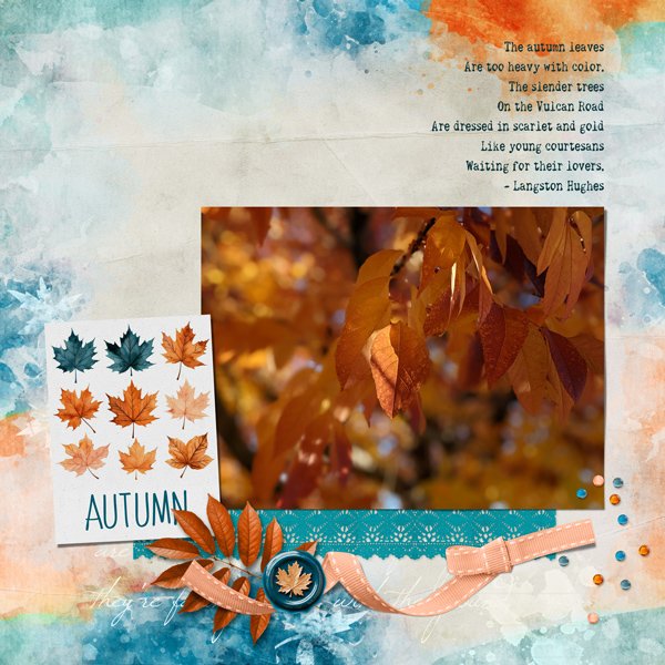 KatL chose the more lyrical Hughes quote for her layout. The way her paper and element choices pull colour from her photo is perfection! She decided the photo was the star of the show and everything else plays a supporting role.