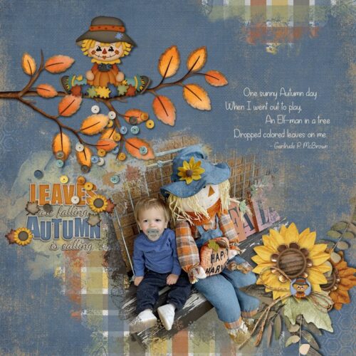 I have some photos of my son buried in leaves like these. They’re about 30 years old. 🙂 If you’re keeping score, the McBrown quote is in the lead. Katherine Woodin has created a lovely cluster of fall elements behind her photos.