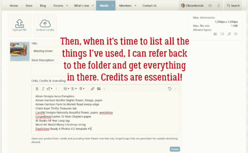 When I’m ready to upload my layout to the Gallery, I’ve got a complete alphabetical list of everything I used already prepared for me… I just have to transcribe it to the description box!