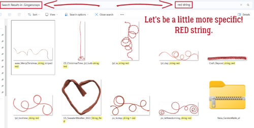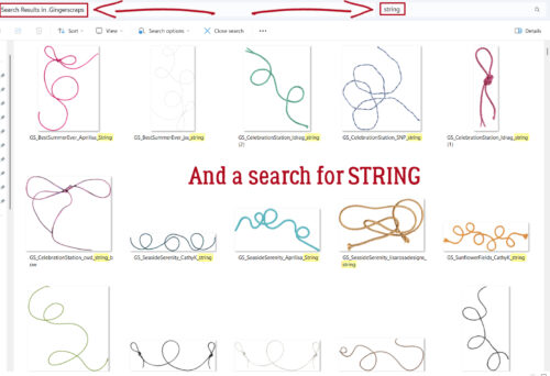 There’s a string on the template, but no string in my base kit, so I ran a search for “string“. And got a gazillion results. 😀