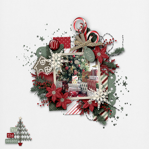 Home For Christmas wraps your memories in farmhouse charm and rustic warmth. Designed in a traditional red, green, and tan palette, this kit celebrates everything that makes the holidays feel like home. Enjoy a cozy mix of winter flowers, a glowing fireplace, candy canes, hot cocoa, Christmas trees, presents, pine needles, and other heartwarming seasonal elements. Whether you are scrapping family traditions, quiet evenings by the fire, or the joy of gathering together, Home For Christmas brings the perfect blend of comfort and festive spirit to your pages.
