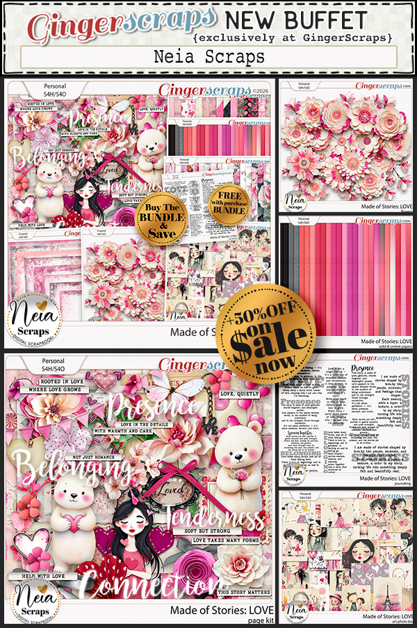 Love Stories is a romantic collaboration inspired by vintage love letters and timeless connections. With a rich palette ranging from deep red to soft pink and lush greens from dark to light, this kit is filled with old fashioned charm and heartfelt emotion. Perfect for telling stories of romance, anniversaries, memories, and cherished relationships, Love Stories brings elegance and nostalgia to your pages. Each element evokes the beauty of handwritten notes, lasting love, and stories meant to be remembered forever.