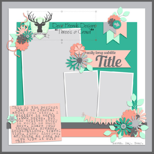 We’ve all been there. You have a selection of photos and a coordinating kit you really want to scrap, not a ton of time, and really want to use a template to speed things up. So you run a search for a suitable template, only to come up with… none that will work right out of the folder. Maybe you have too many photos for the spots on the template, an issue GingerScrapper Joleen ran into recently. Or you have too many spots on the template for the number of photos you want to use. Well, the too-many-spots-for-photos is an easy fix. Just delete the extra(s)! But wait! The too-many-photos-for-spots isn’t a difficult fix either! Let me show you four ways to do it without straining your brain.