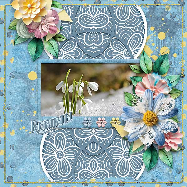 Ah, snowdrops! They’re often the first sign of spring, sprouting and blooming through the snow, heralding the rebirth of warmer weather. The way kabrak1207 has arranged her layout, the observer’s eye moves right to the photo, while the blue palette clings to the chill of winter.