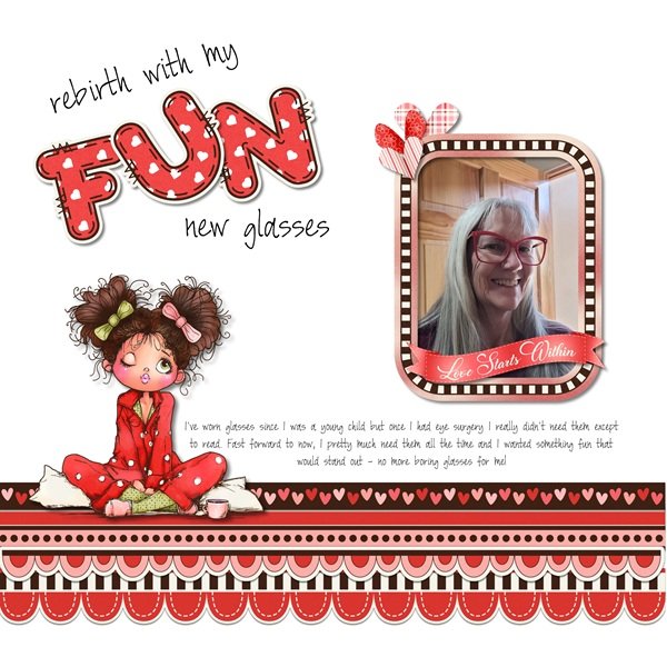 This layout by ranchcreations put a big smile on my face. I love everything about it, but especially the way she’s perched the pyjama-clad gal on that boho border. It’s such a joyous approach to what could be a very sober subject. (And I’m still struggling with my vision – I’m having a lot of trouble with colour discrimination as well as glare. I know it’s mostly cataract-related but hopefully it can be mitigated a bit. My glasses had to be remade, and I’m picking them up tomorrow.)